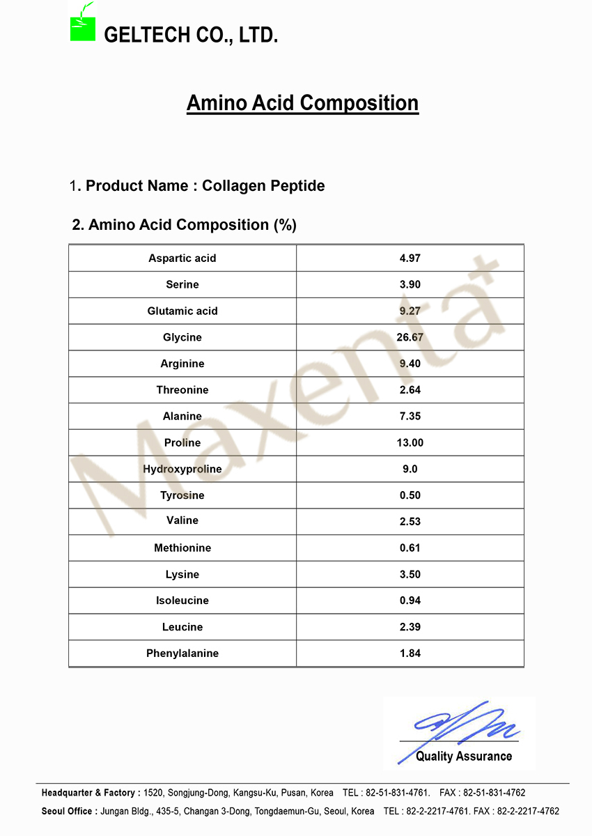 MAXENTA Fish Skin Collagen Peptide, the Anti-Aging Functional Food that helps to restore our bodies to the prime of youthful beauty and health by high concentration & Low Molecular Weight of Fish Collagen Peptide (Amino Acid) and Grape Seed Extract (flavonoid).